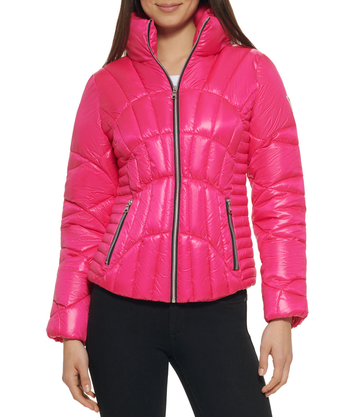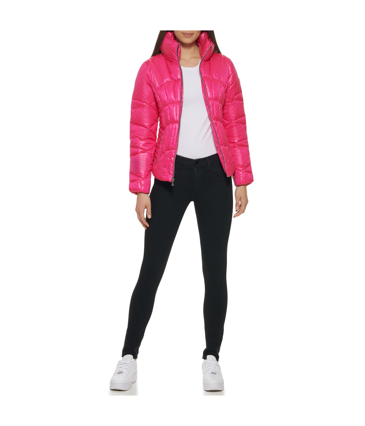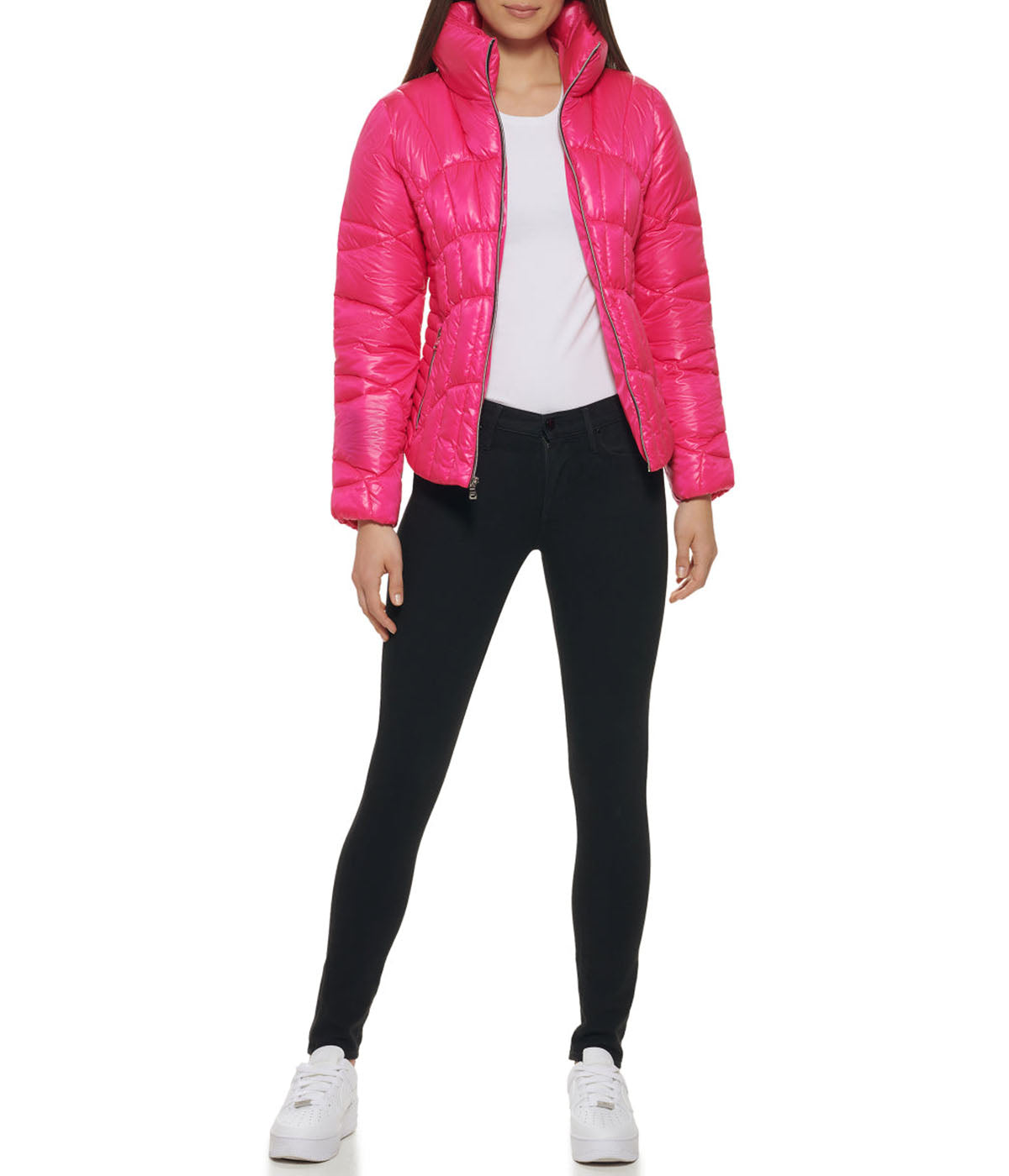 Introducing our stylish and cozy puffer jacket. a must-have addition to your winter wardrobe. This meticulously crafted piece boasts a fitted bodice that accentuates your silhouette while providing exceptional warmth. Its quilted exterior not only adds a touch of sophistication but also ensures you stay comfortably insulated during chilly days. Equipped with a convenient front zip closure and zip pockets. this jacket offers both practicality and fashion-forward design. The 23.25 length (size M) strikes the perfect balance between versatility and on-trend style. Embrace the cold with confidence. thanks to the 100% polyester self/lining/fill. which guarantees optimal heat retention. Additionally. the 98% polyester and 2% spandex knit collar and cuffs ensure a snug fit that keeps the cold at bay.