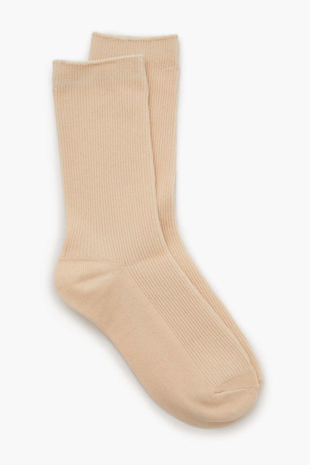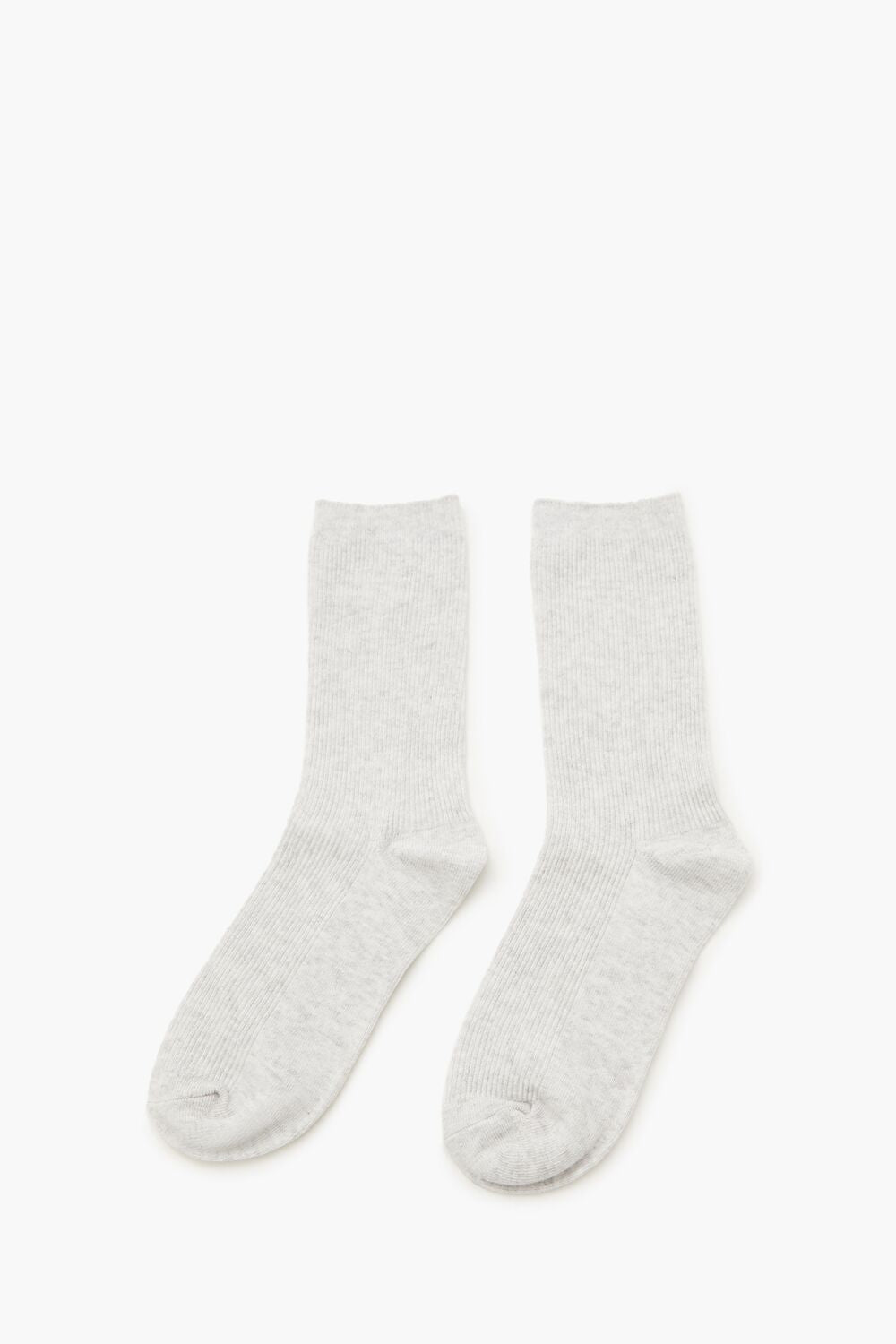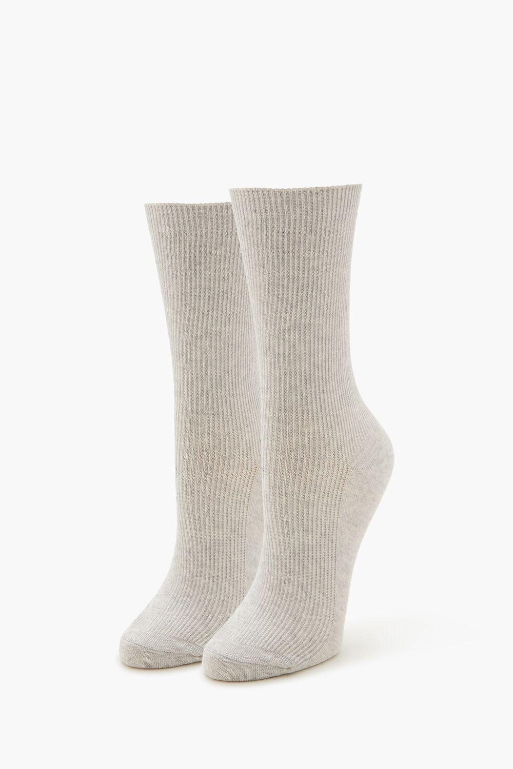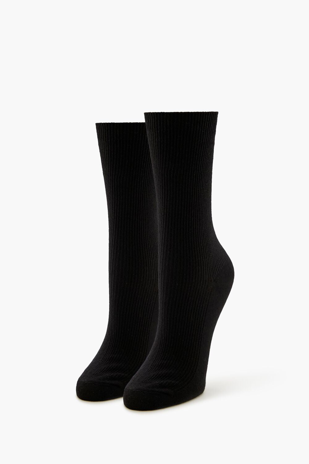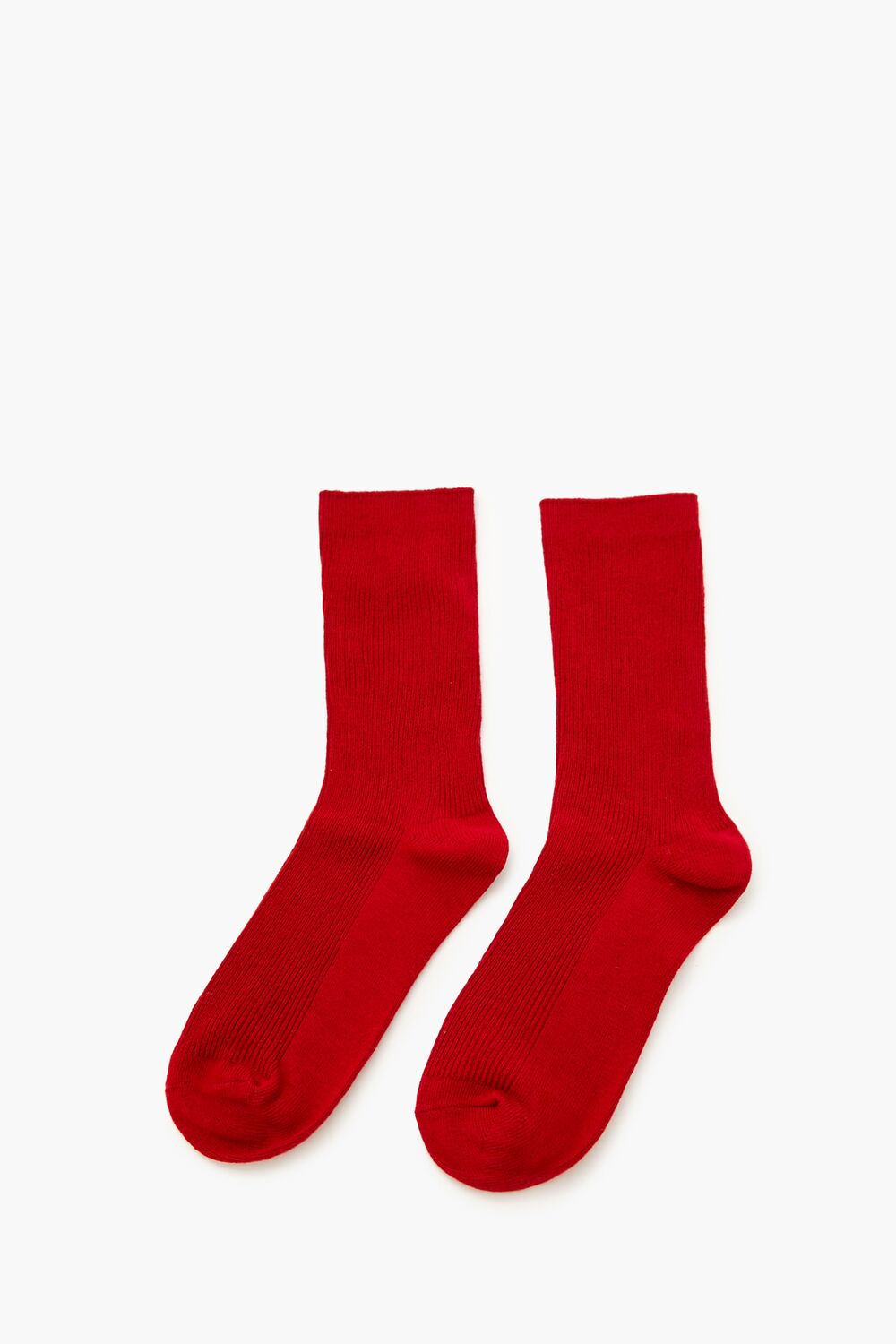A pair of knit crew socks featuring a ribbed construction.