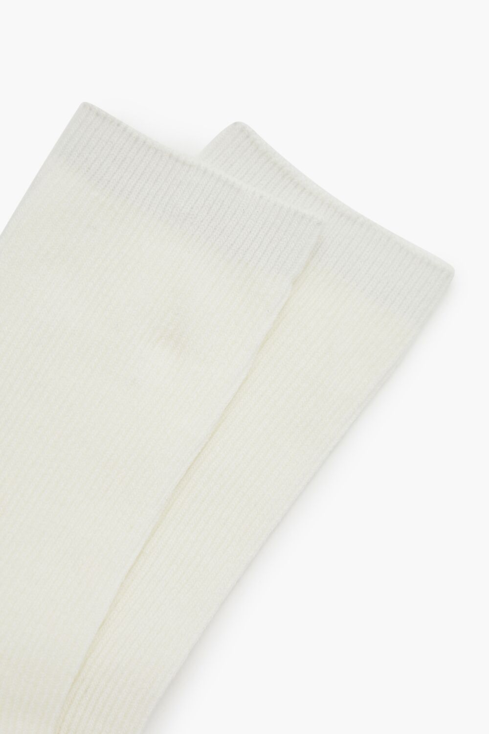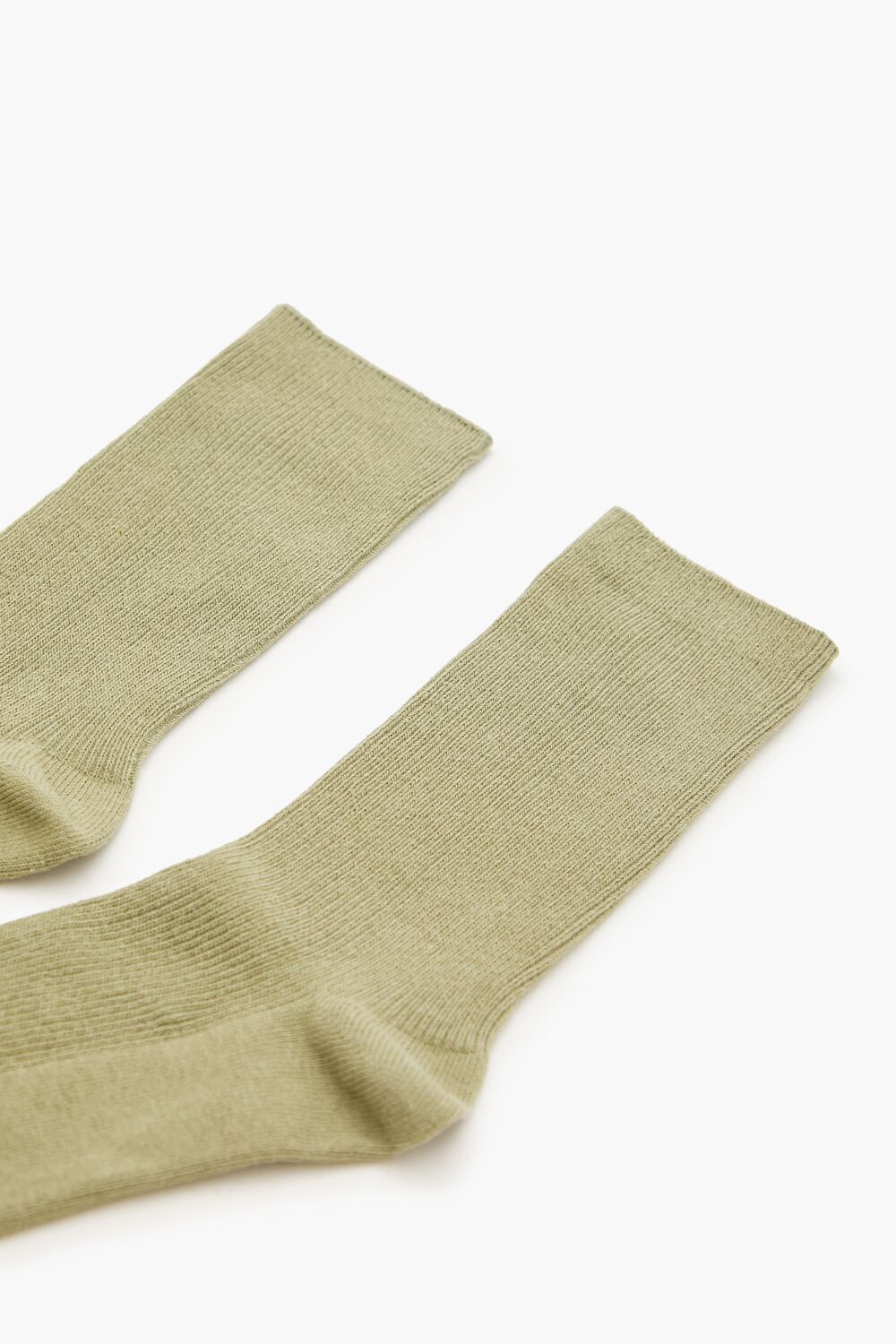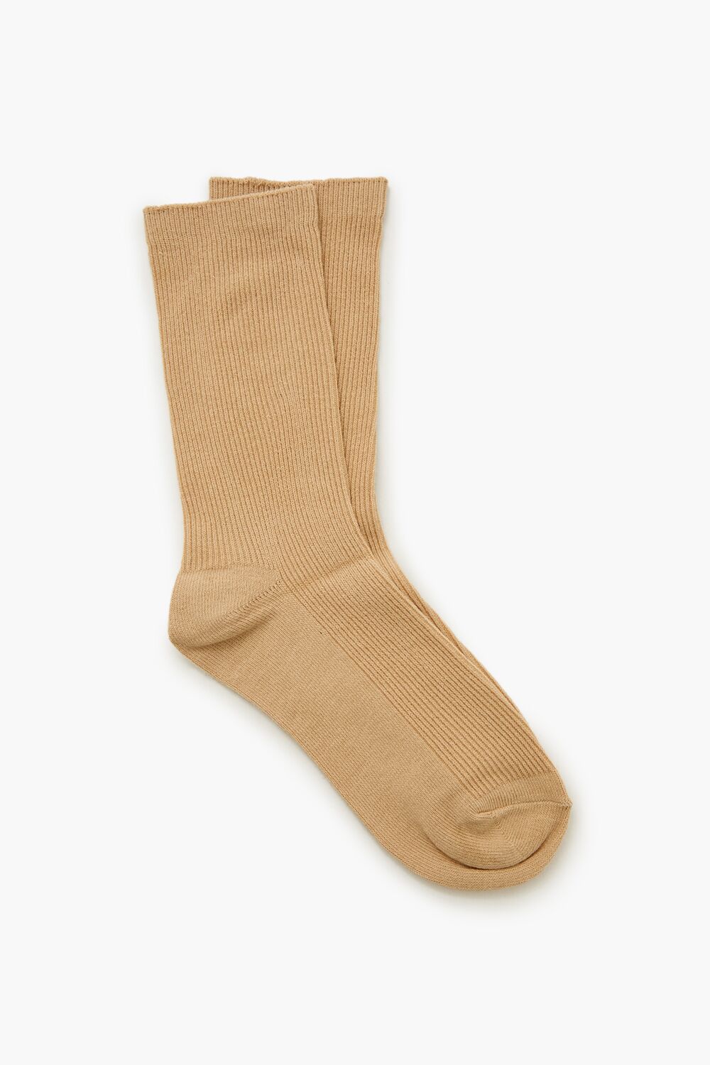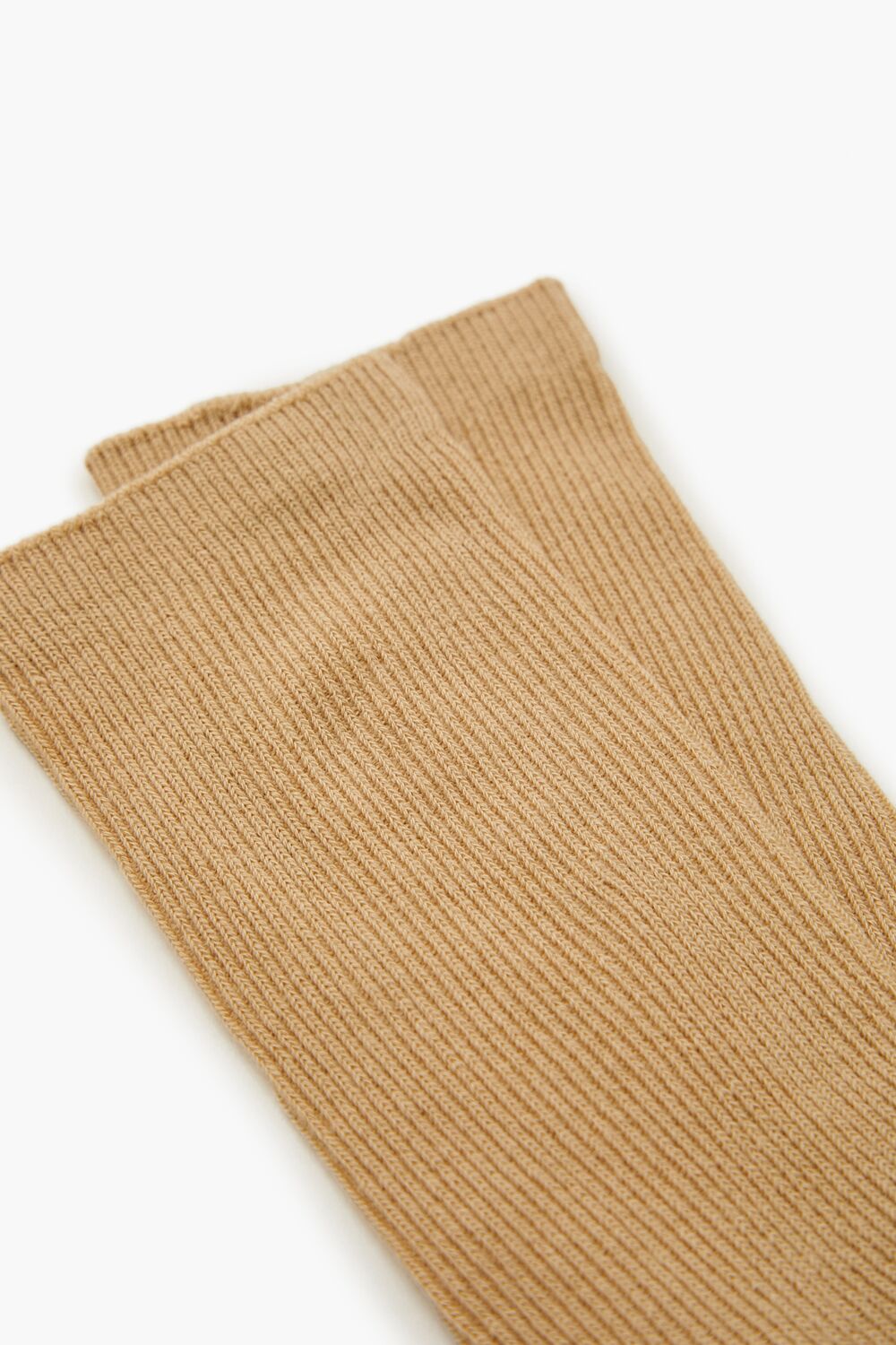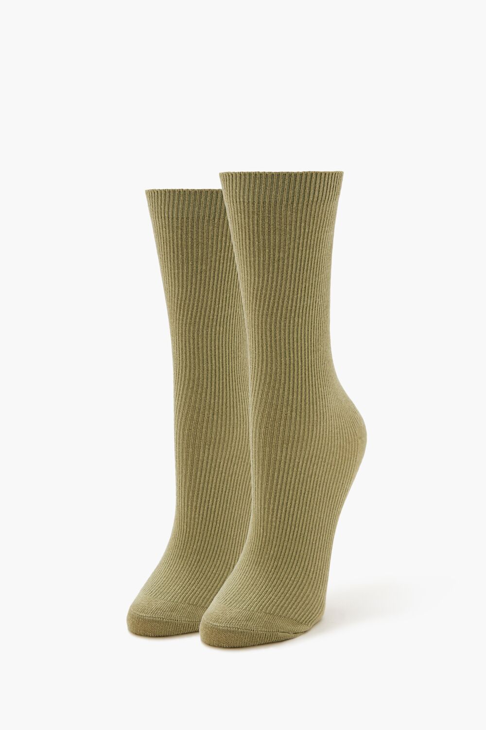 A pair of knit crew socks featuring a ribbed construction.