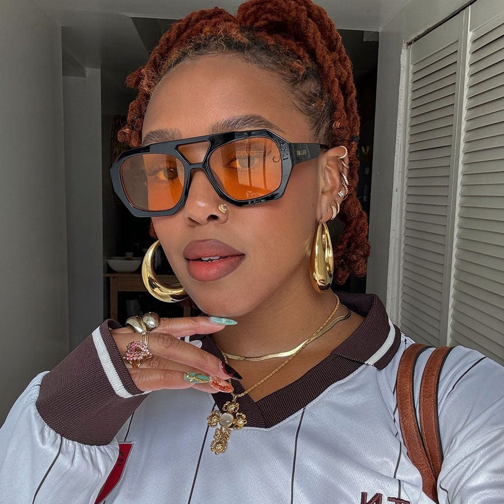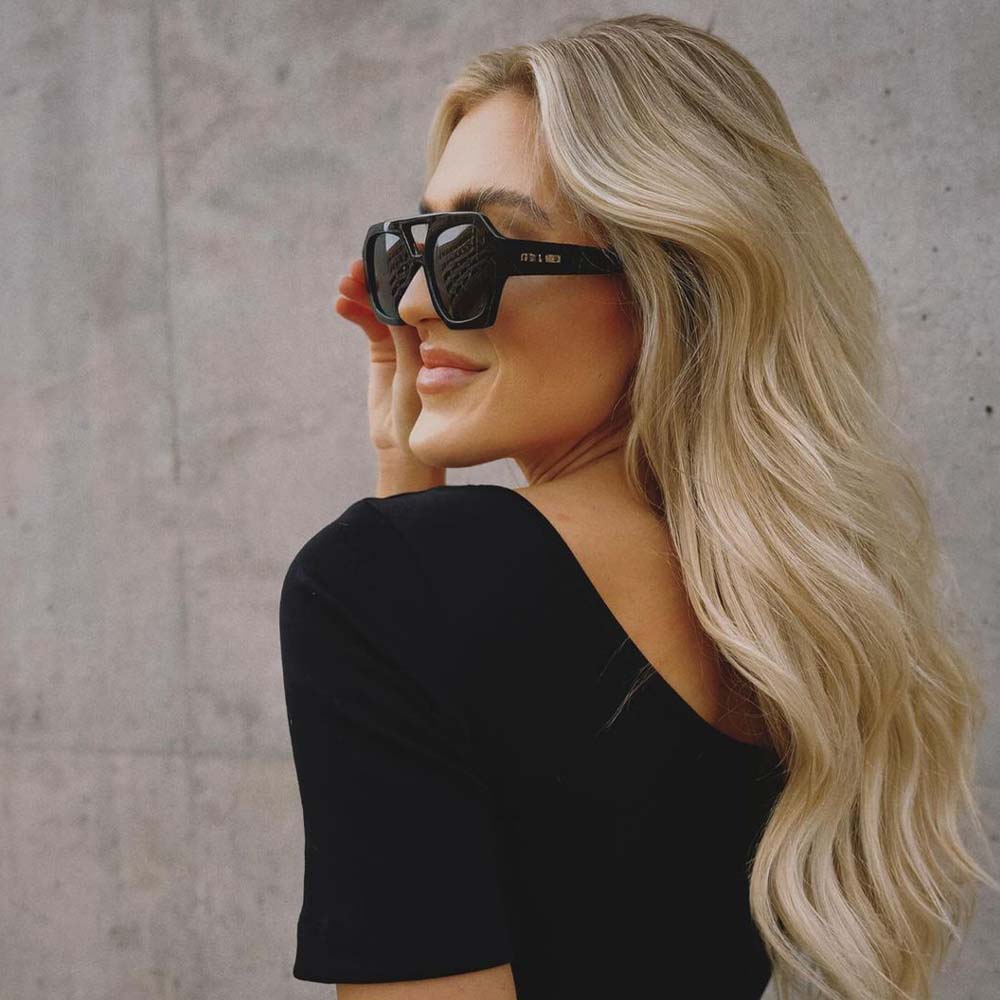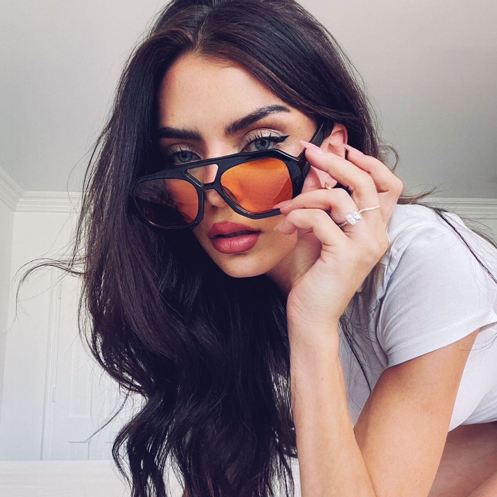 Ryder?sunglasses feature a?coveted geometric aviator frame and oversized lenses. Sporty and effortlessly?on-trend. Ryder is available in?black/orange. black. transparent tan. and classic torte.