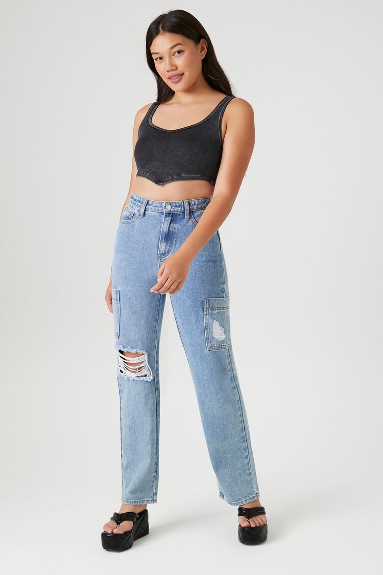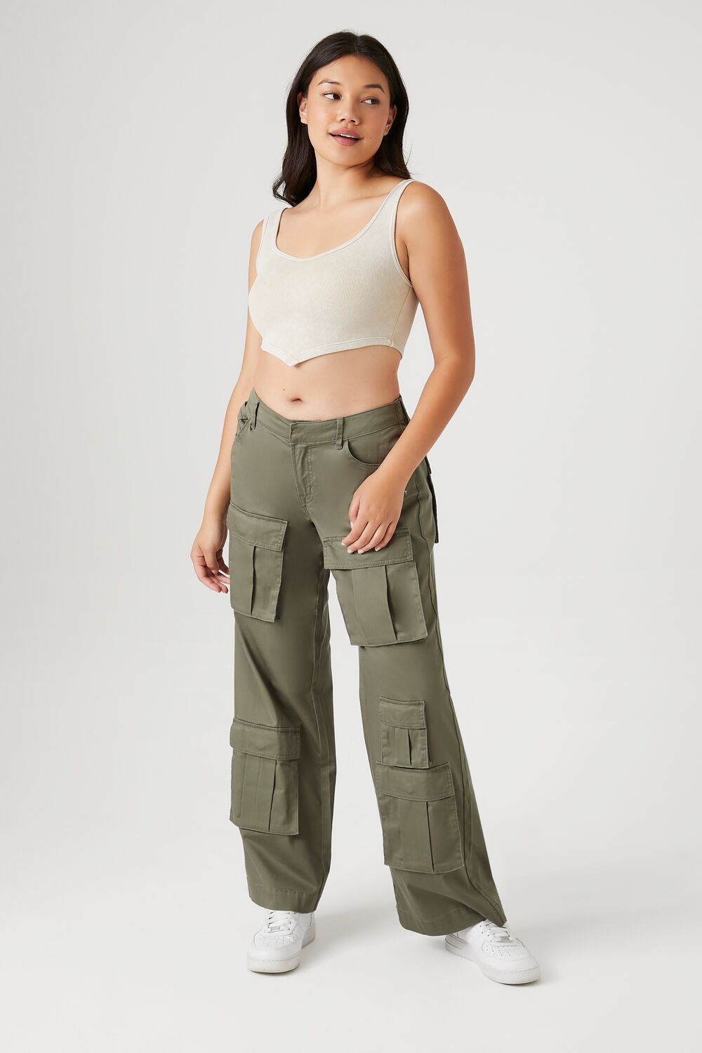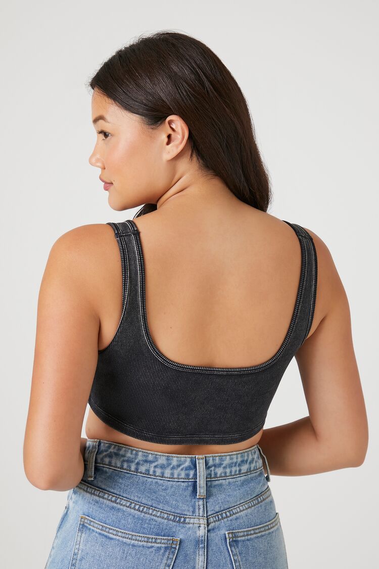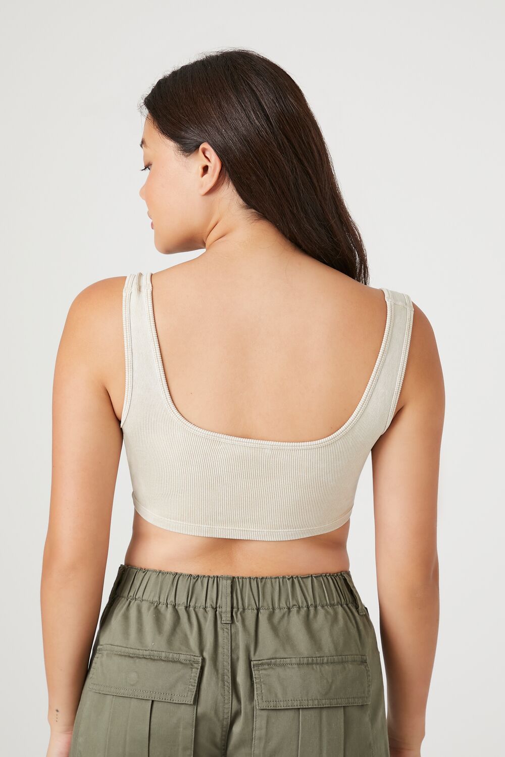 A seamless knit tank top featuring a ribbed construction. scoop-cut neckline and back. shoulder straps. and a cropped V-hem.