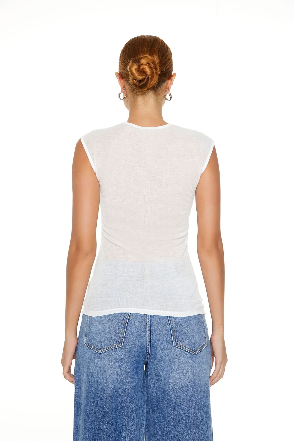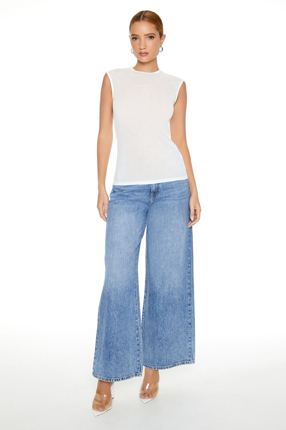 A jersey knit top featuring a round neckline and sleeveless cut.
